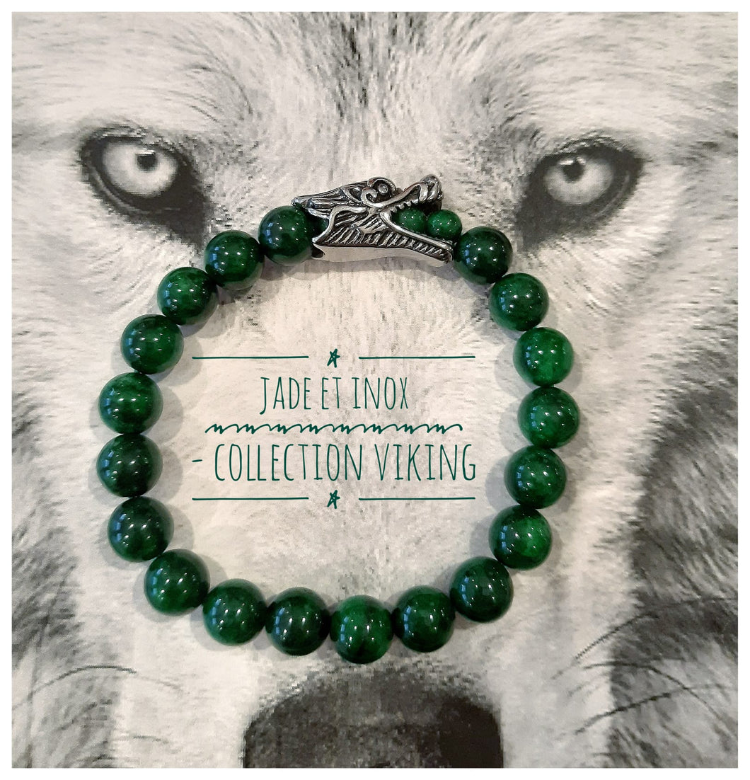 Très beau bracelet Viking composé de perles de jade de haute qualité, d'un vert émeraude masculin et racé.