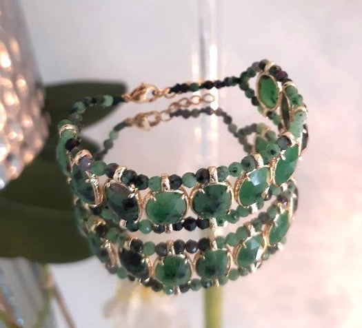 Superbe bracelet florentin en inox doré & agates vertes - NEW