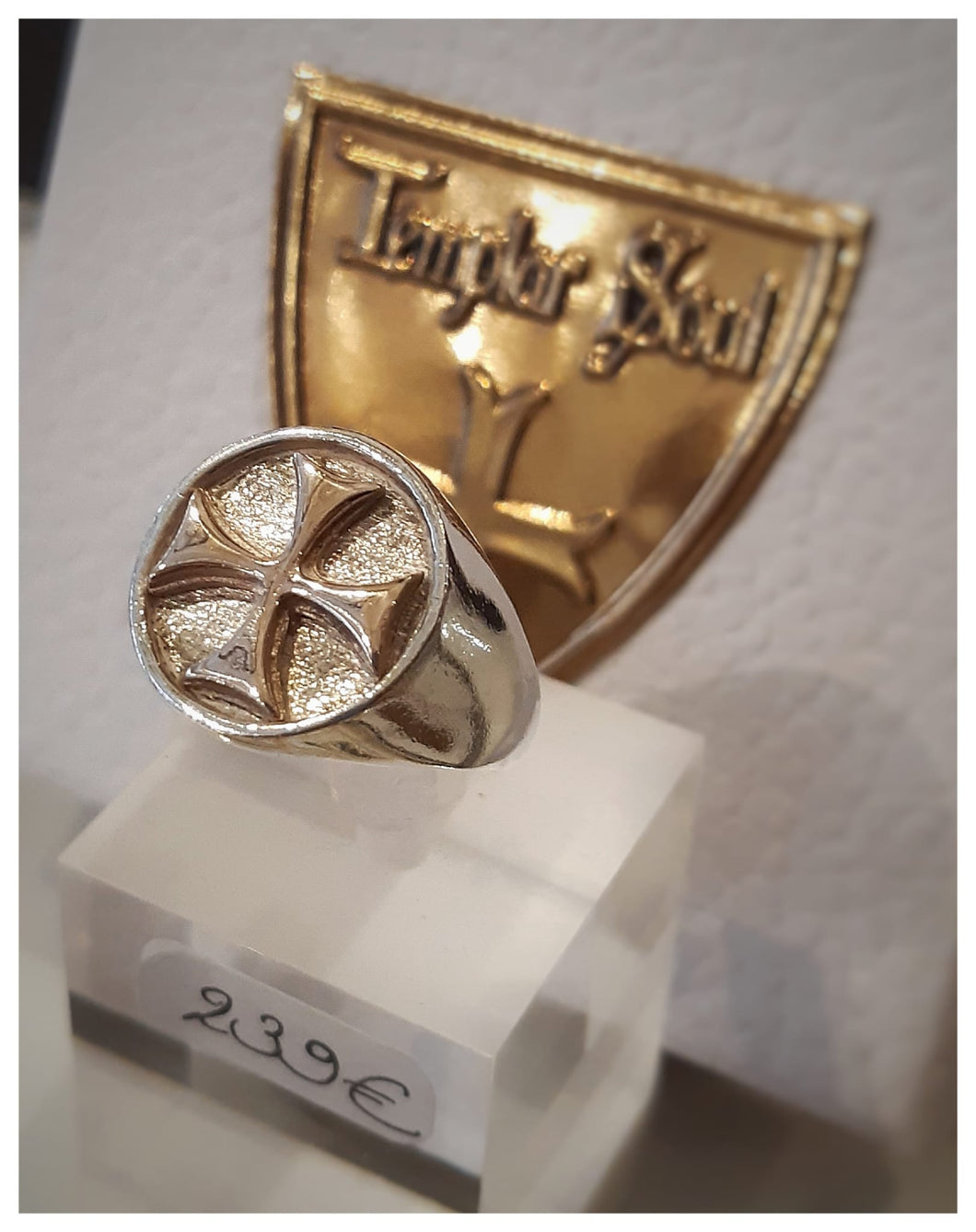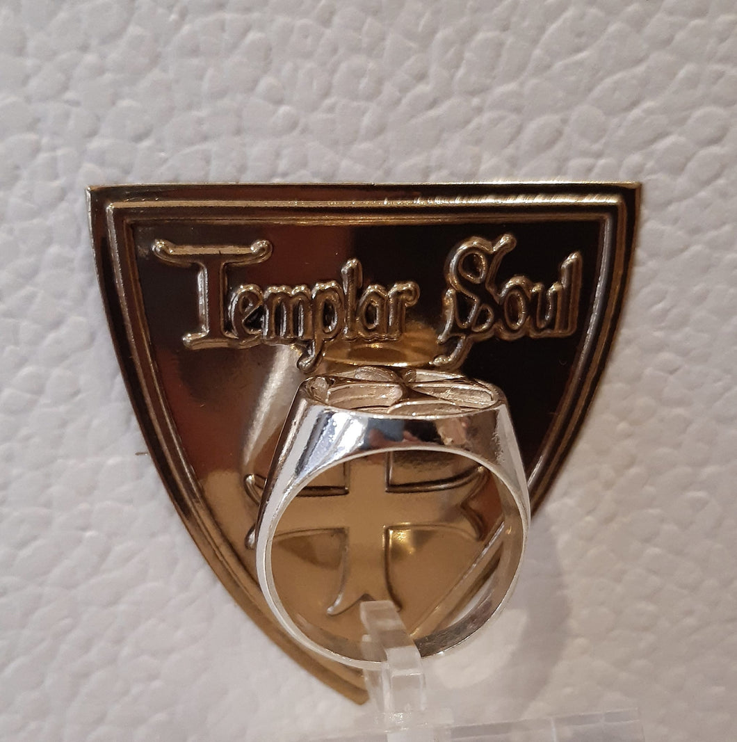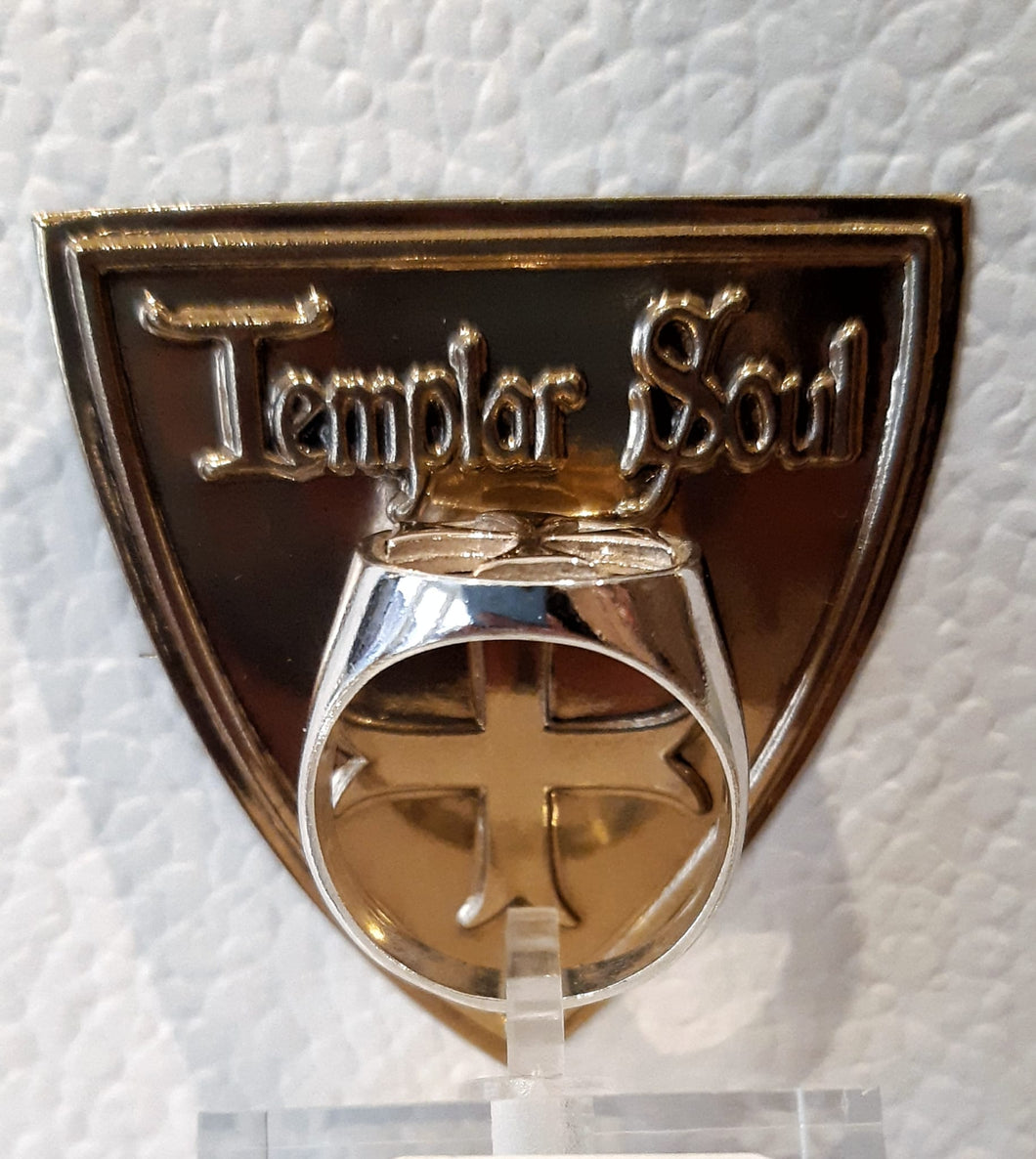 NEW !! Chevalière en argent plein Croix des Templiers en or 18 carats