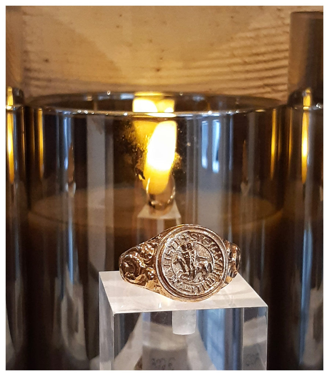 NEW pour Dames! Chevalière Sceau Templier en argent couvert d'or - sur commande & sur mesure!