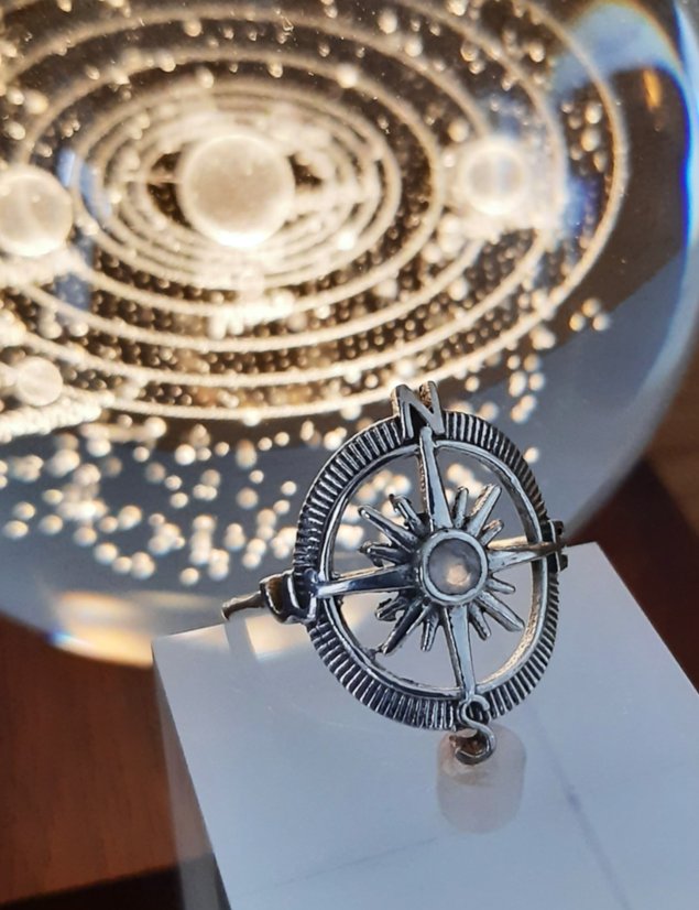 Cette bague ajourée, délicate & féminine complétée des points cardinaux lui rend un bel hommage, un guide à votre doigt.